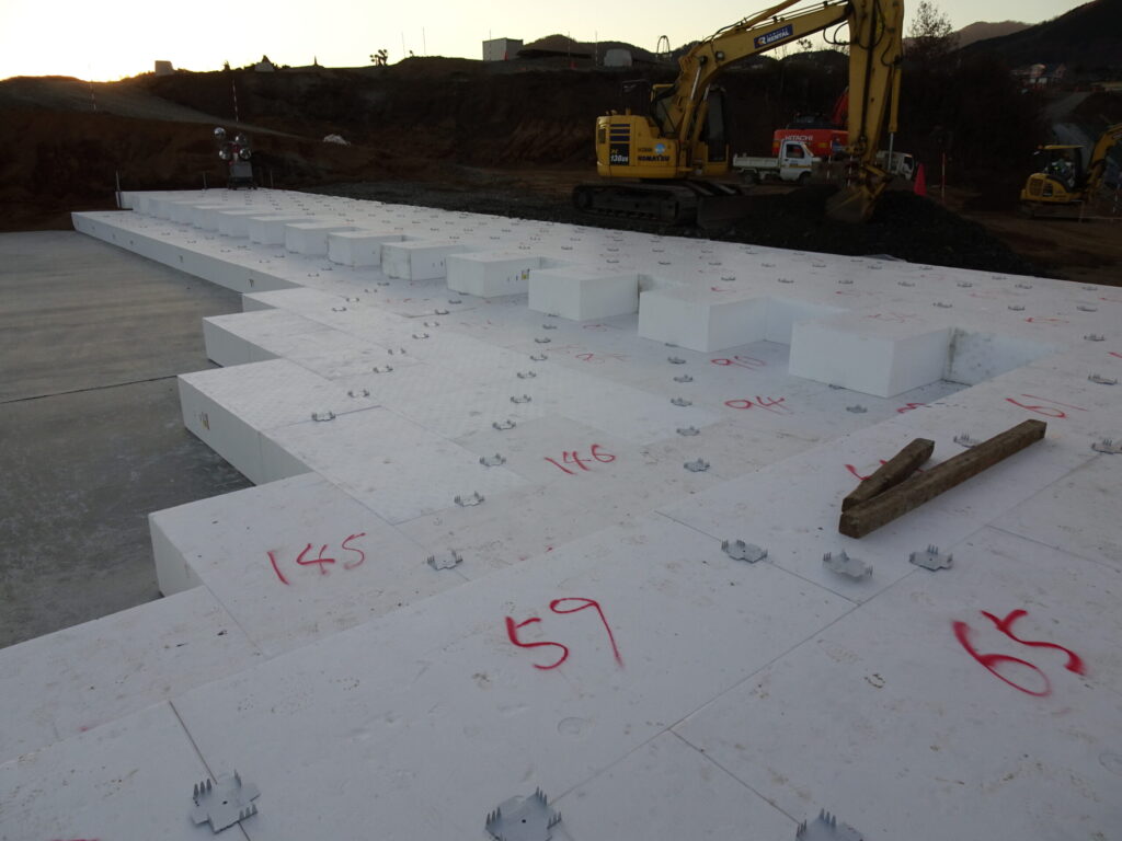 軽量盛土は、従来の土砂に代わって軽量な資材(発泡スチロールブロックや特殊発泡材など)を使用し、構造物や地盤などに対して影響を軽減する工法です。主に軟弱地盤、狭小地、橋梁・擁壁背面、インフラ周辺など、地盤負荷や施工条件に制約のある場所で活用される。